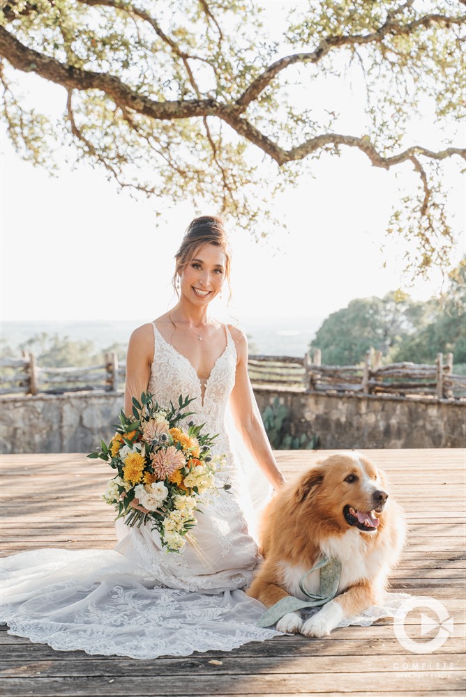 Under the sprawling branches of a majestic oak tree at Inspiring Oaks Ranch near Austin, Texas, Kristie and Kurt exchanged vows in a quintessential October wedding that embraced fall’s enchanting charm. The scene was awash in pale autumnal hues and vibrant pops of orange, with delicate leaves drifting through the crisp Hill Country air, casting a warm glow over the intimate ceremony. Their beloved dog, a joyful part of the celebration, pranced down the aisle, delighting guests and adding a heartfelt touch to the day.