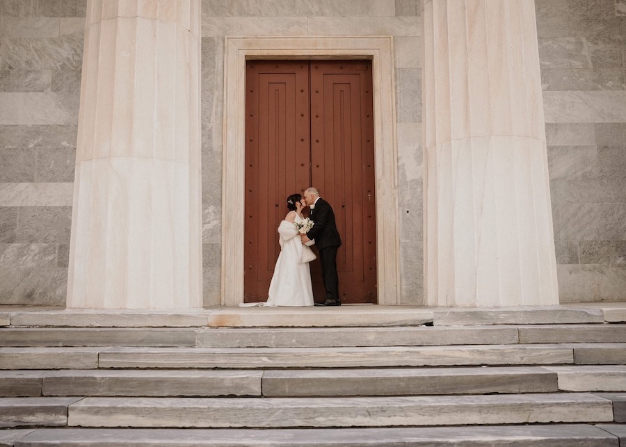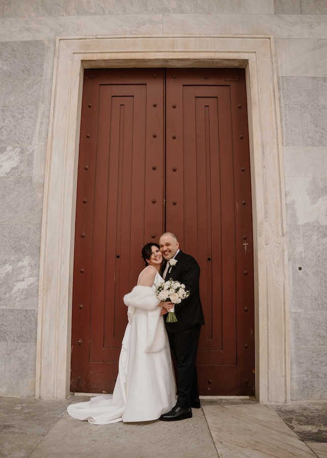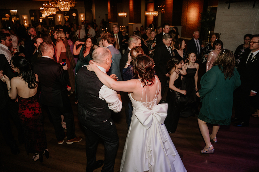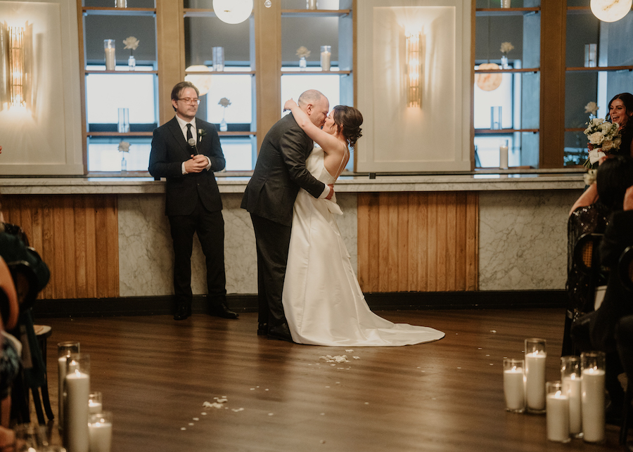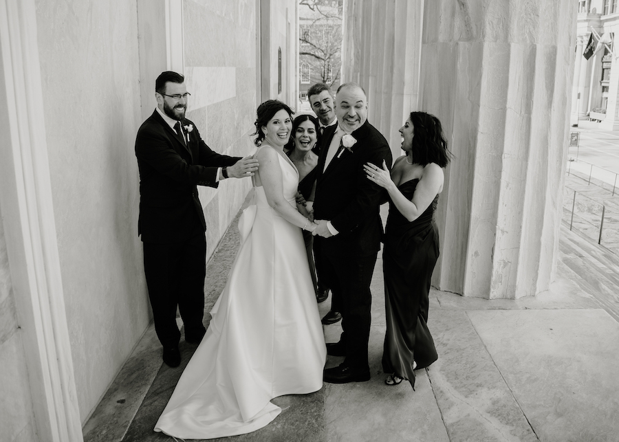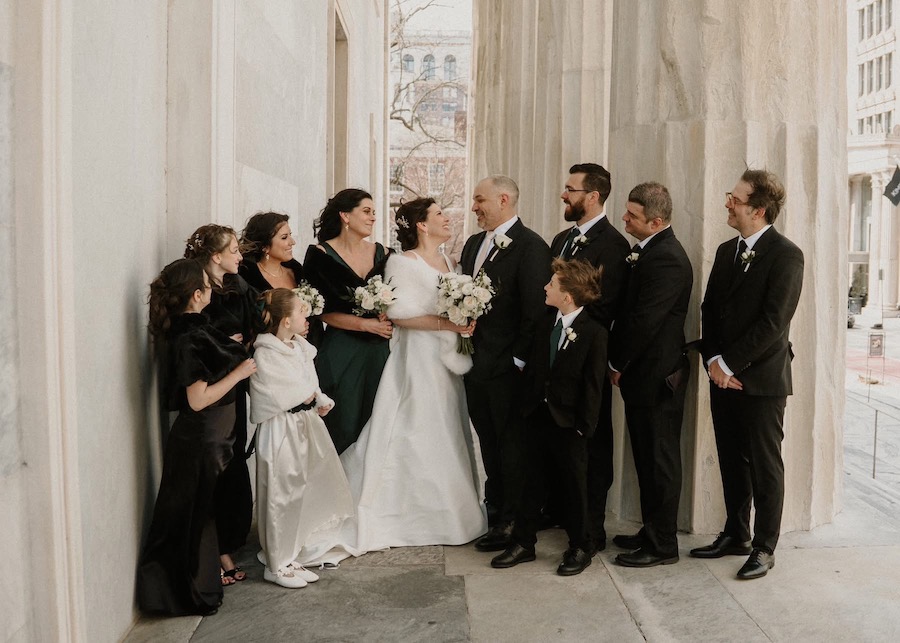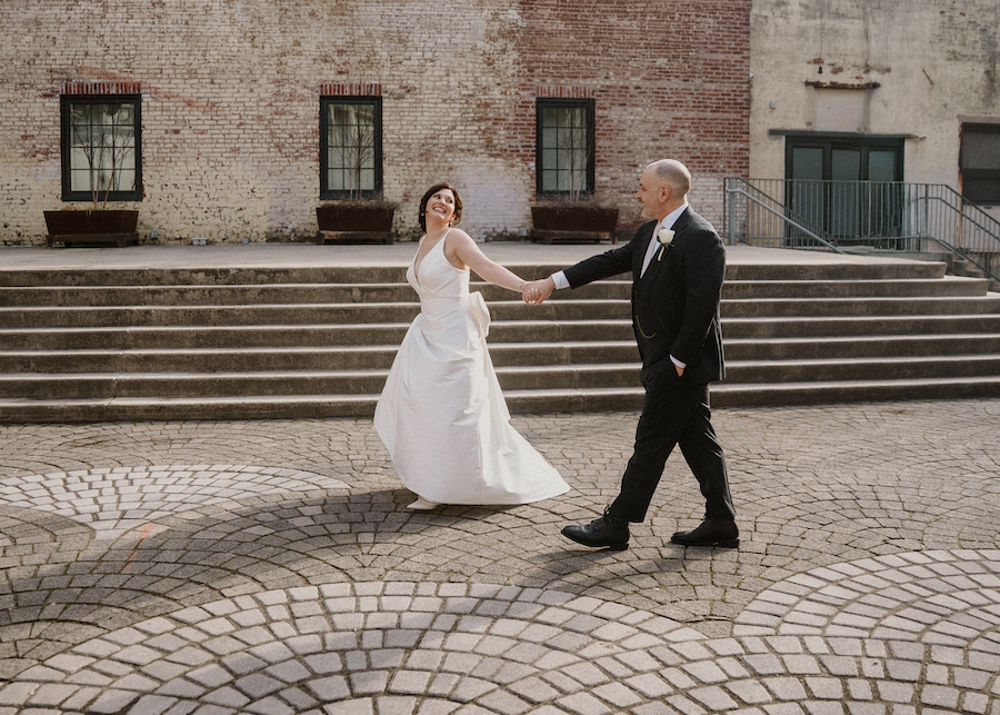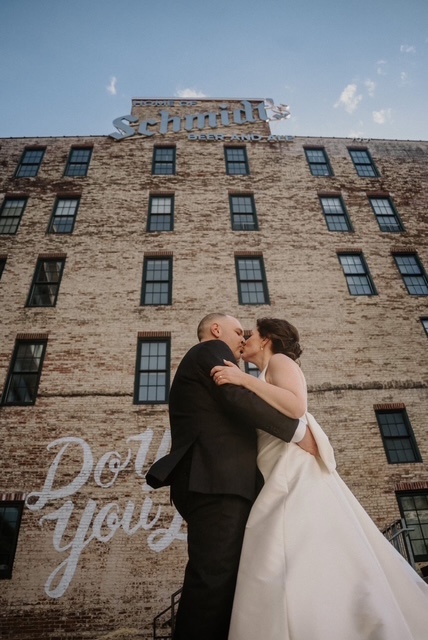 One of the best parts of this venue is how many photo options are close by. You can step outside and find city textures, amazing views, and modern architecture. We used the building’s exterior lines for clean portraits with a timeless feel. The buildings gave us fantastic photos and kept everyone comfortable in the chilly air. And you cannot have a wedding at The Gateway Building without getting photos with the iconic Schmidt’s building in the background. The variety keeps your gallery interesting without wasting time driving around.