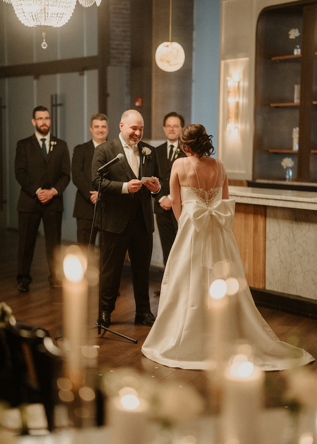 The Tendenza also offers a great indoor ceremony option. Katie and Dante chose to keep everything inside, which made the timeline stress-free (as well as their guests cool). The space feels open yet romantic without feeling cold, empty or echoing. Guests had clear views, and the room still felt intimate while being large enough to hold everyone. From a photography standpoint, the light was consistent and flattering. That helps keep skin tones natural and true. It also keeps editing clean and simple. Indoor ceremonies here work well in any season. That flexibility is a huge win for couples planning in Central PA.